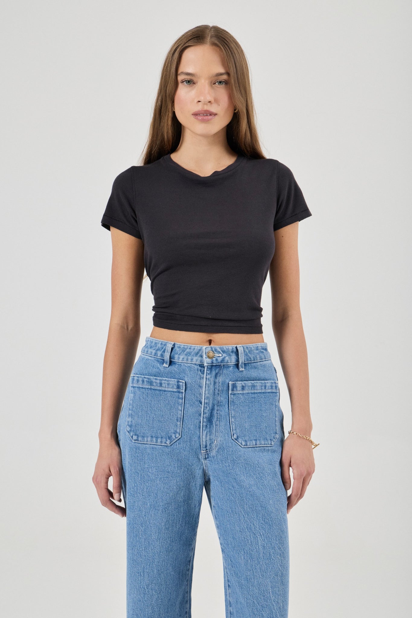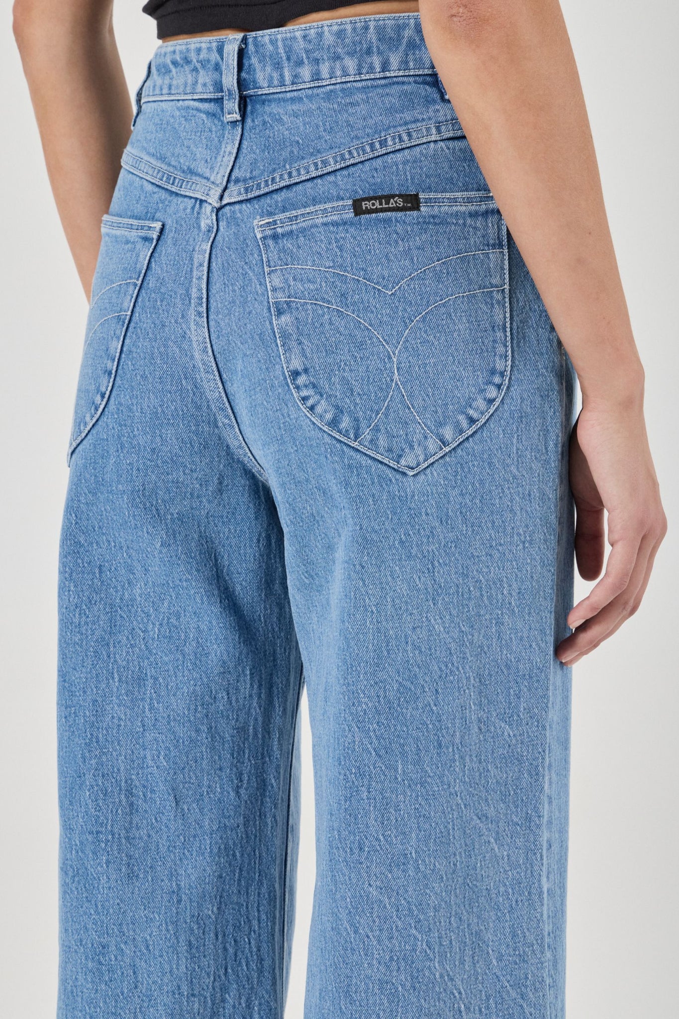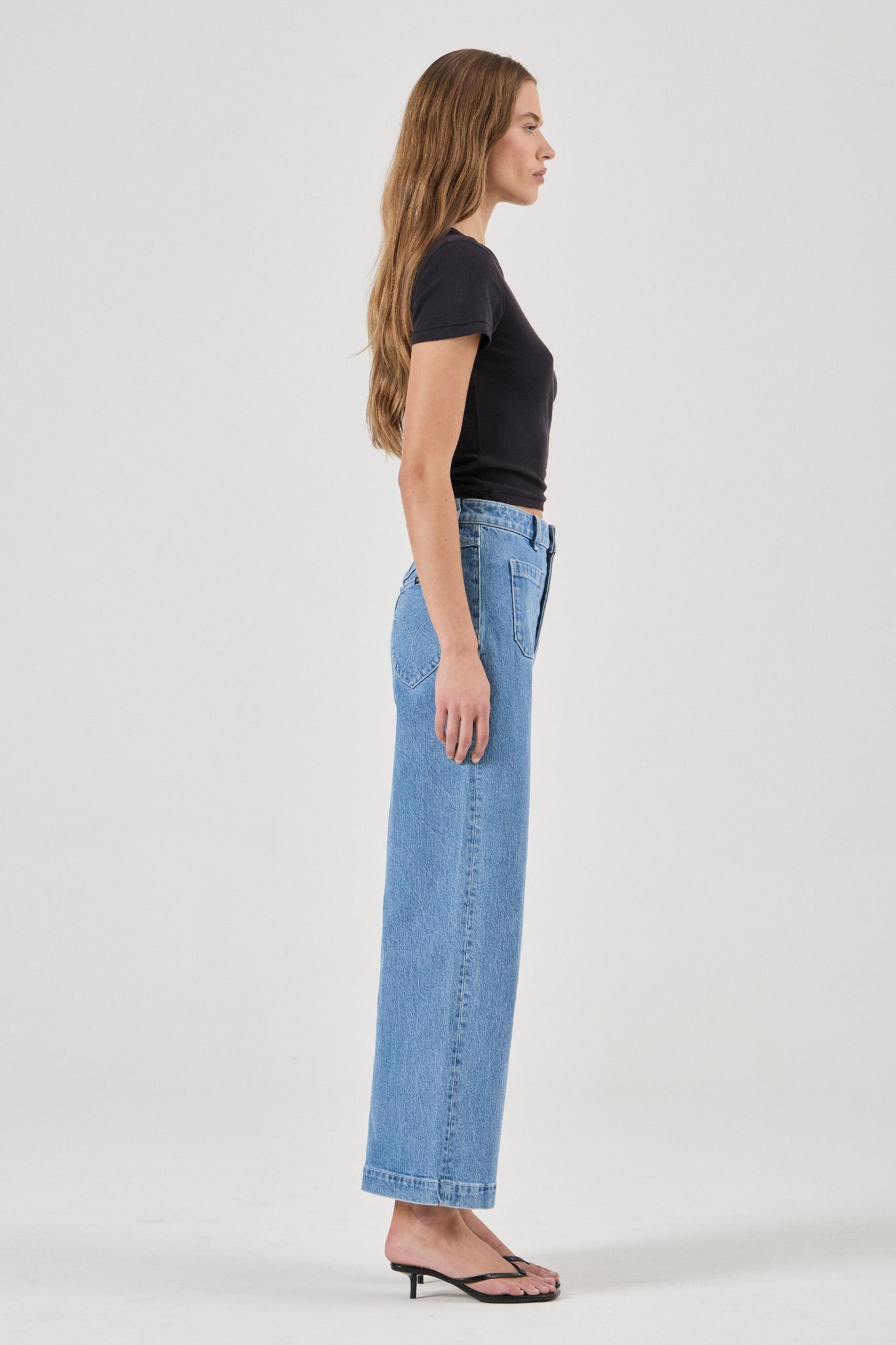 The Sailor Jean in Lily Blue features patch pockets, a wide leg and a mid blue wash. Crafted from Australian cotton and finished with Rolla's signature back pocket stitching, this sailor jean is the perfect addition to your wardrobe. Pair with one of our Toni Tanks or Ballet Rib Camis for an effortless look.