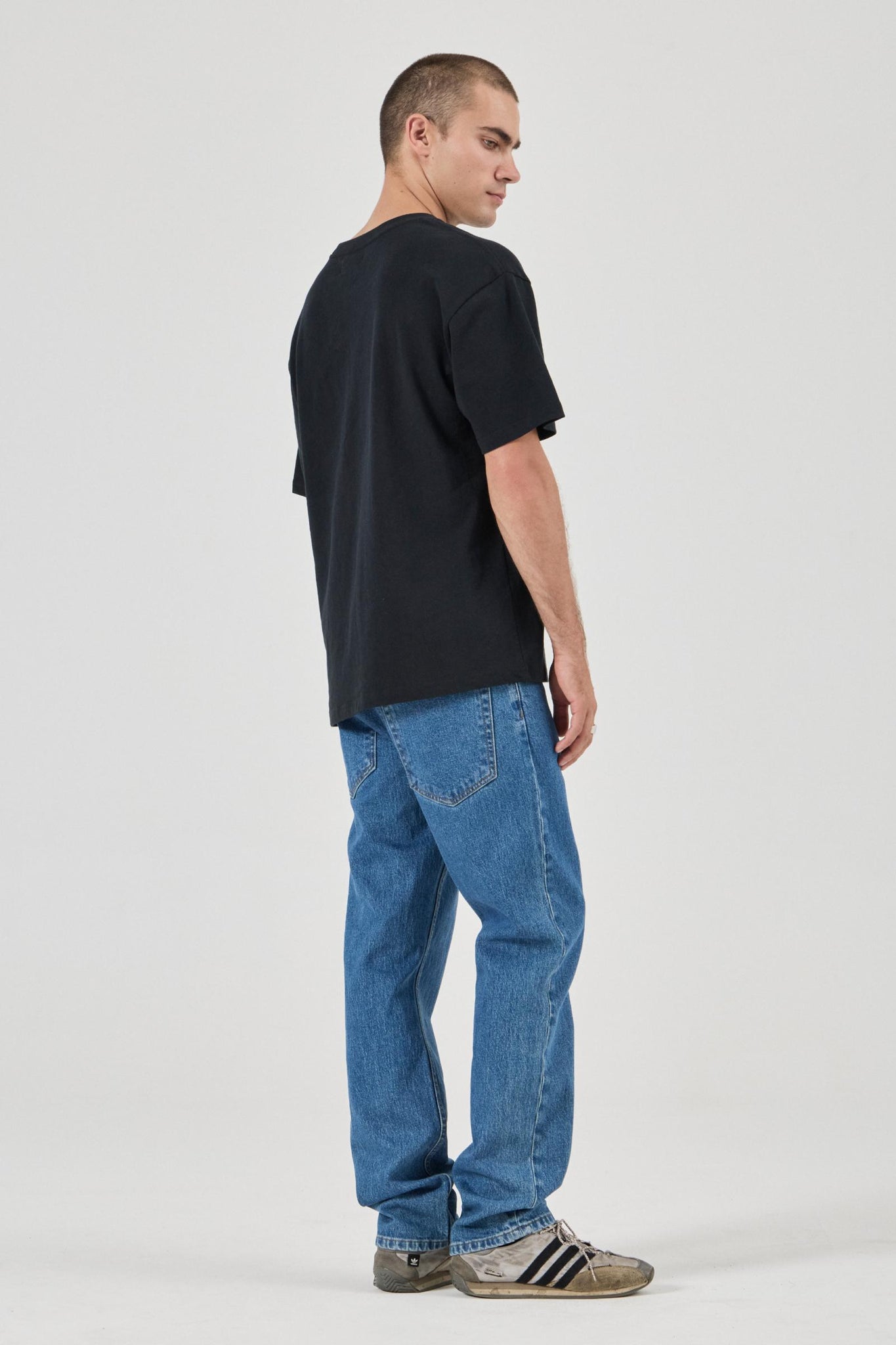 - A modern straight-leg cut with a relaxed feel through the waist and thigh