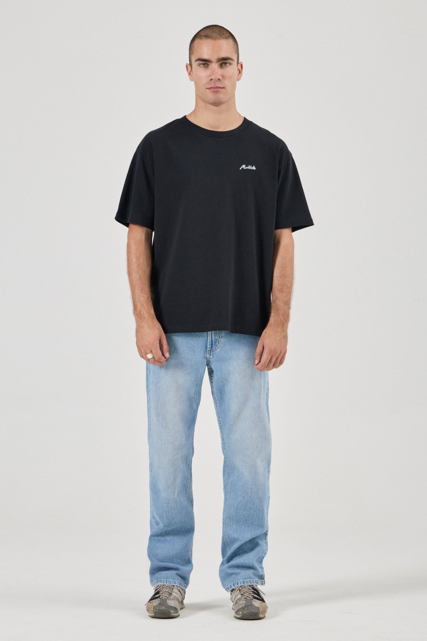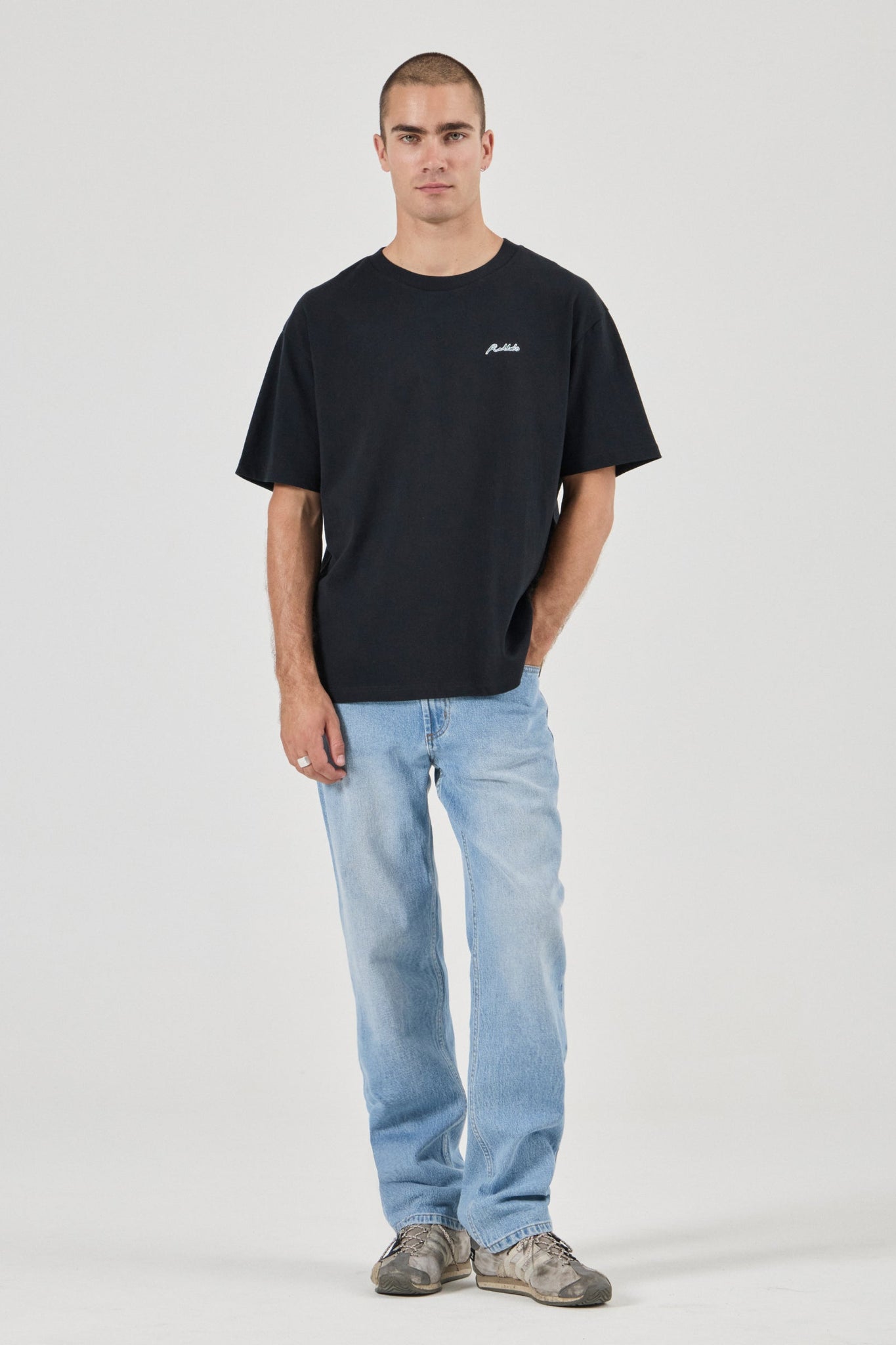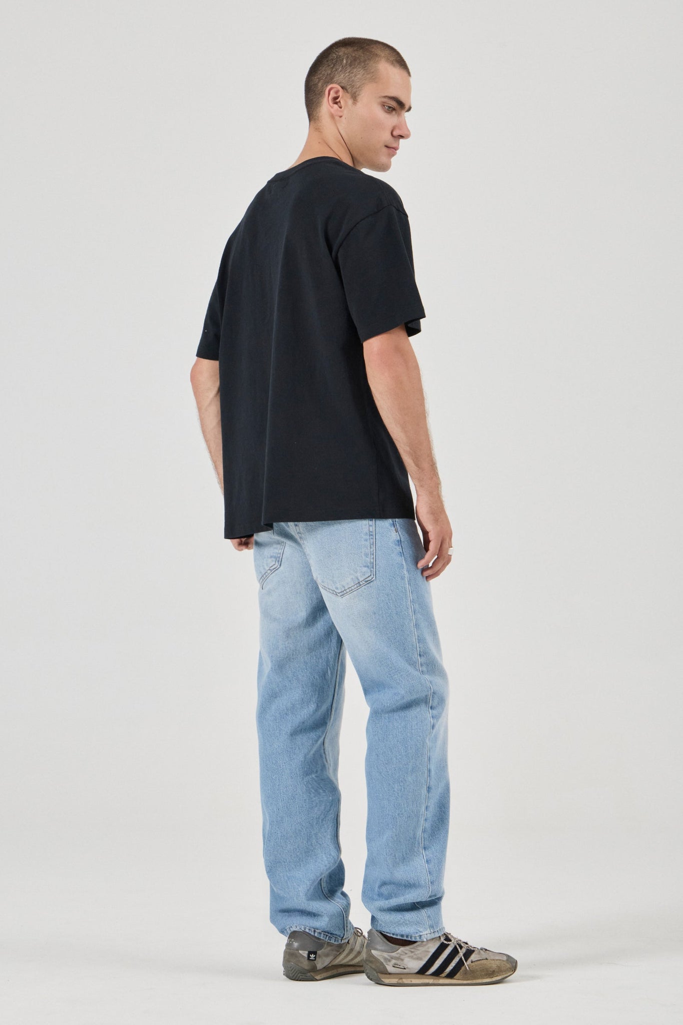 Relaxed waistband, seat, and thigh, with a straight leg from knee to ankle for a clean, modern silhouette
