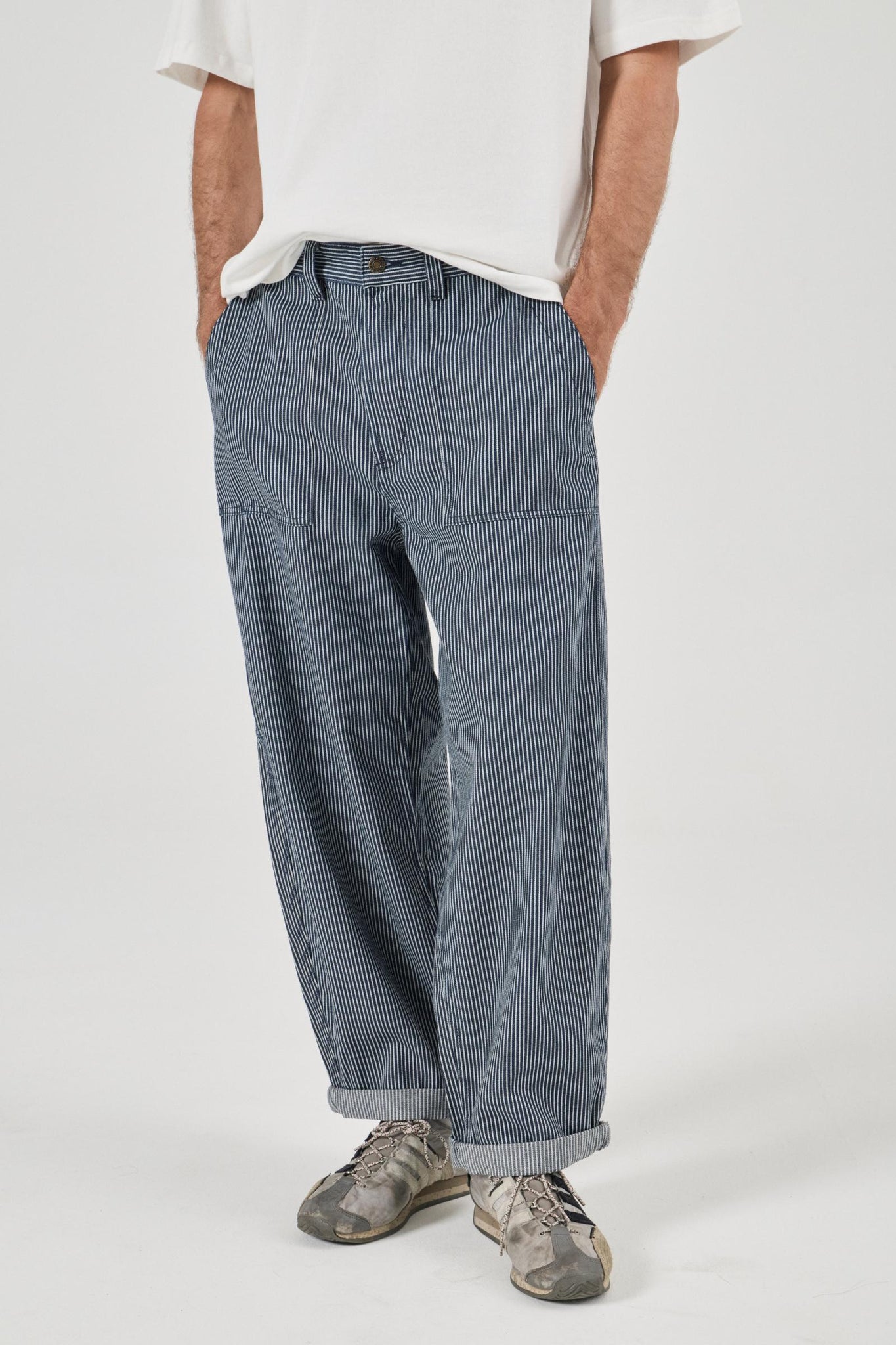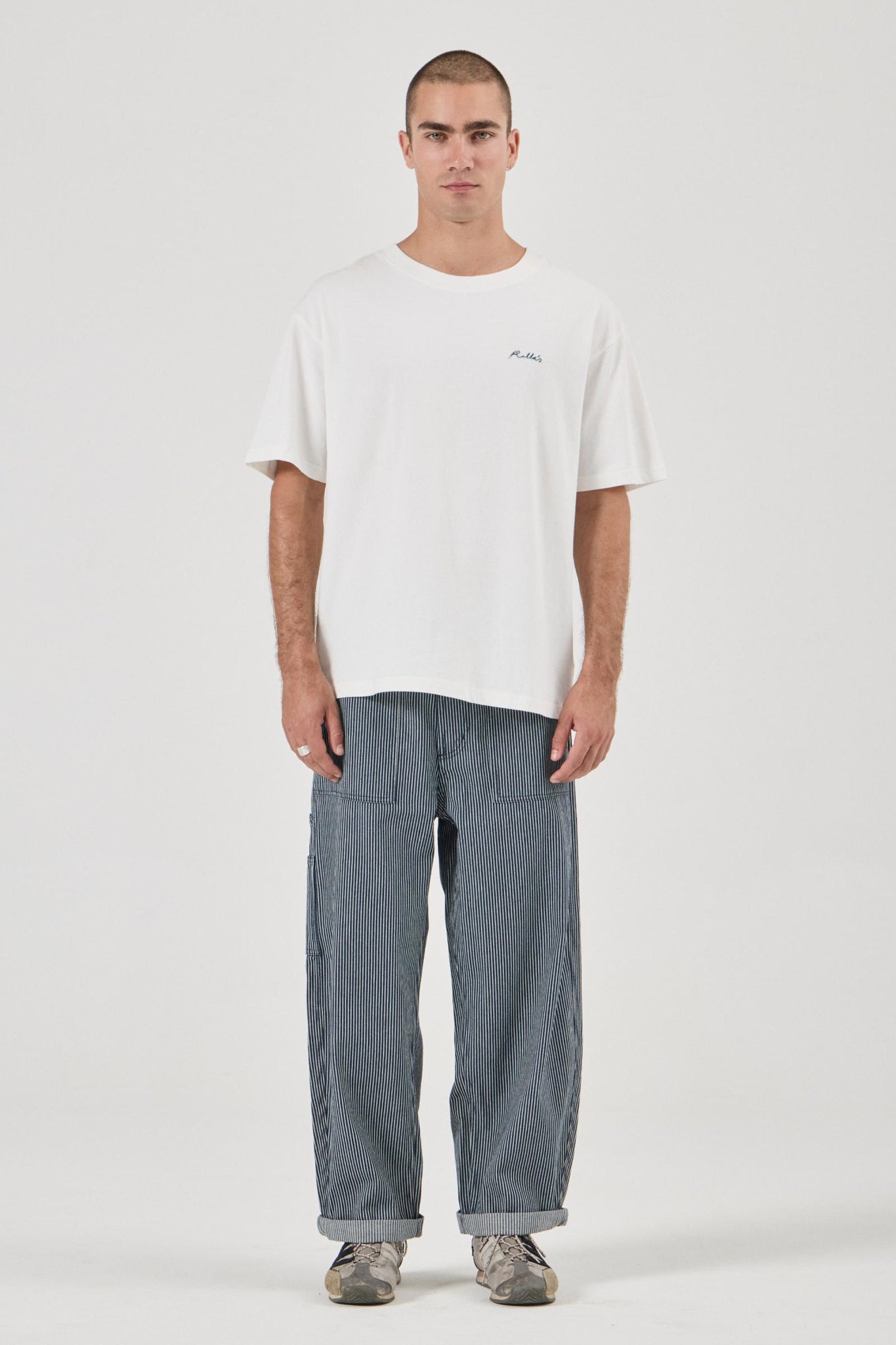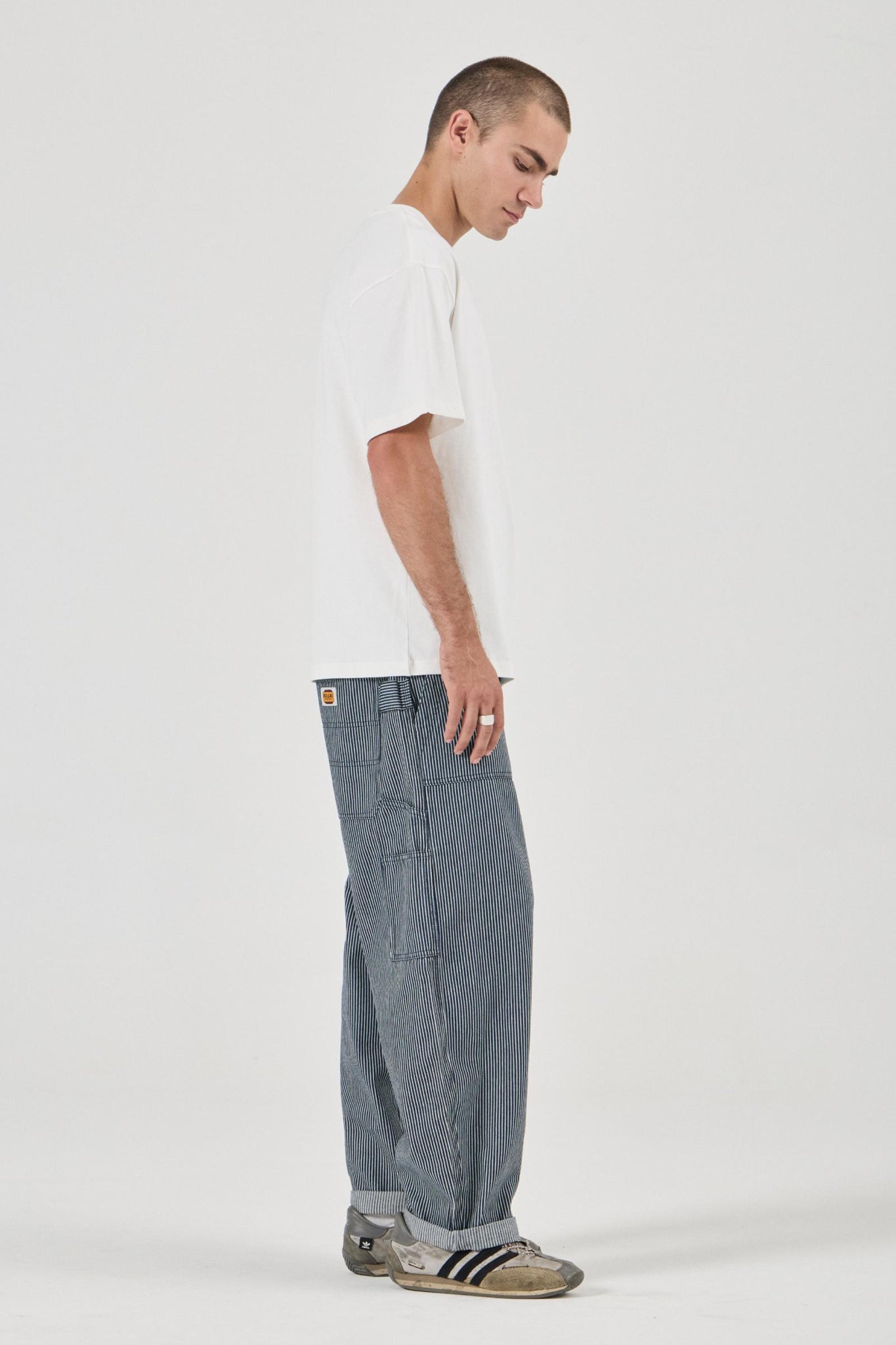 • Relaxed waistband, seat and thigh leg profile that tapers off at the hem for the classic barrel leg