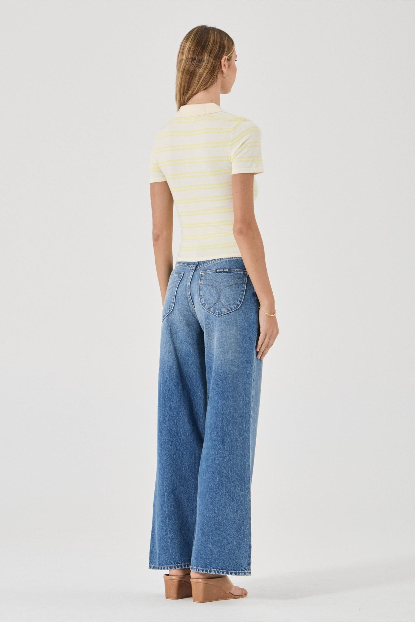 - Finished in a pale yellow/off white horizontal stripe for a bold, retro vibe