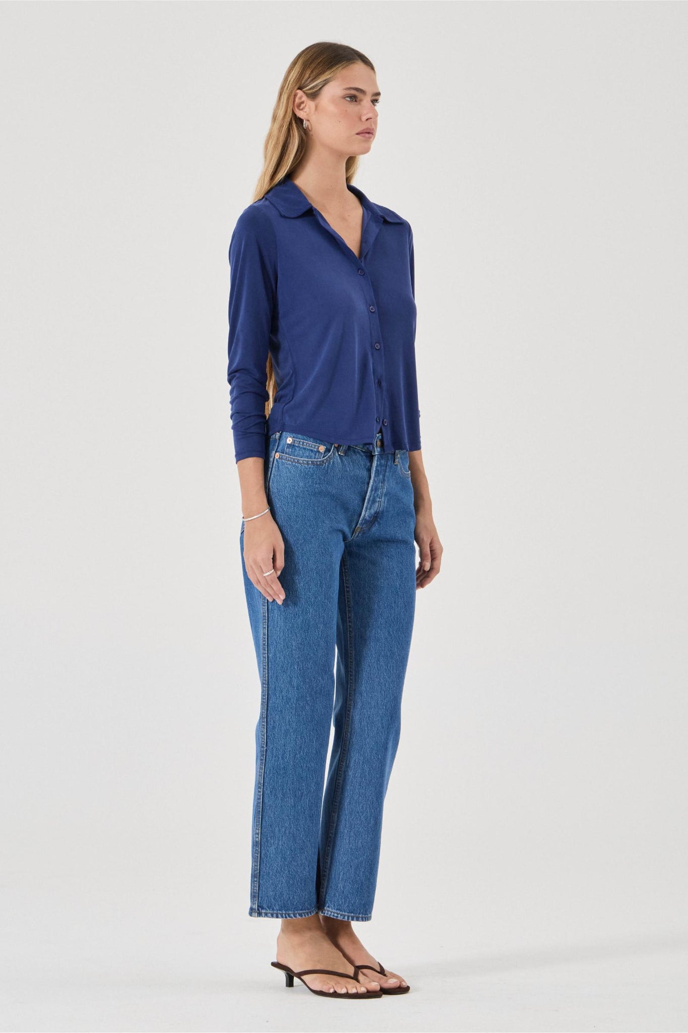 Slim-fitting collared button up shirt for a sleek, feminine silhouette