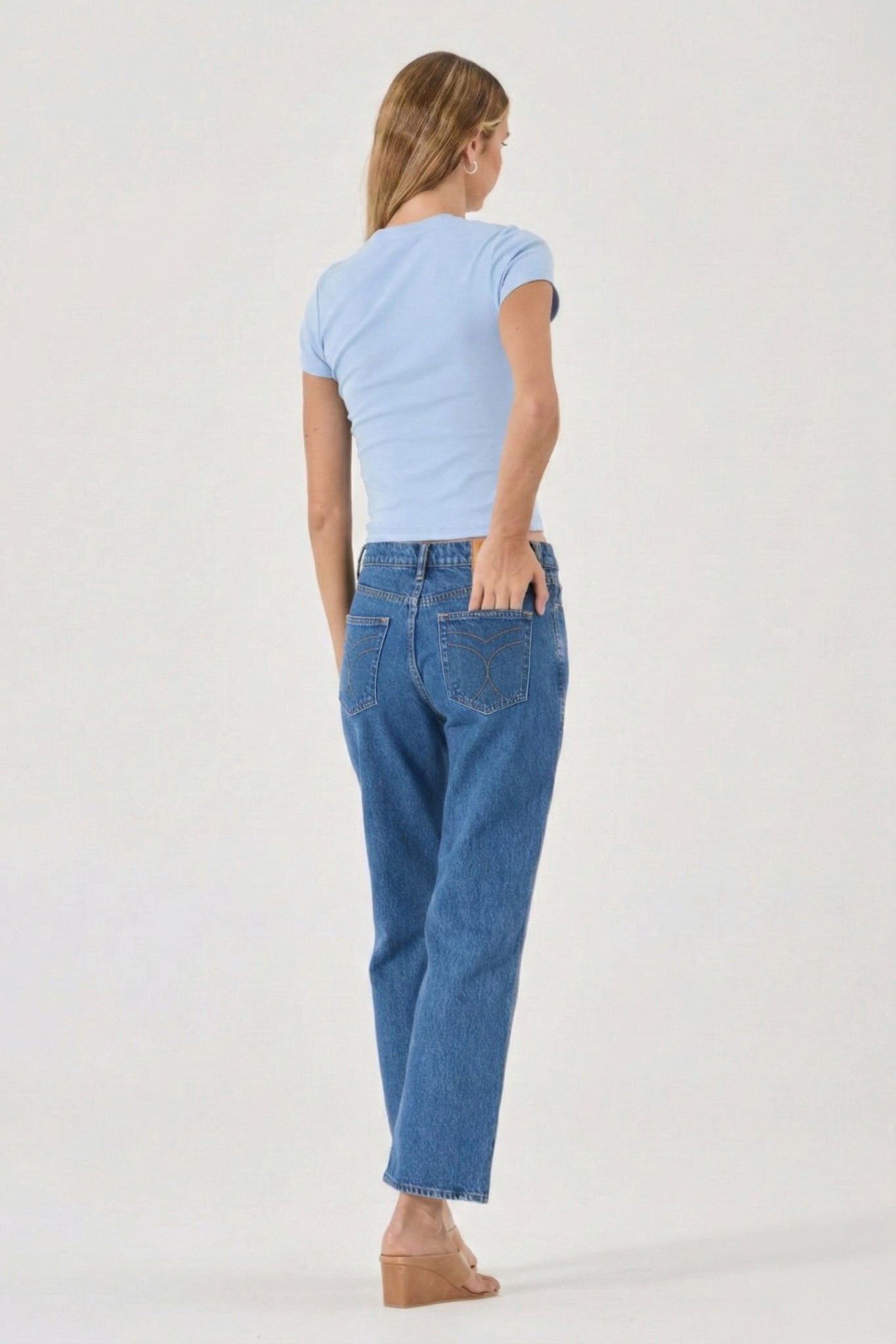 A mid rise relaxed boyfriend jean with a straight leg